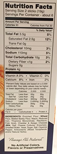 Produced with a number of alternating layers of fresh sourdough and generous mounds of a hundred% real aged Cheddar & Asiago cheeses, gently seasoned with cayenne butter, then hand-twisted and baked twice for \"the best crunch!\" Wonderful with cocktails, soups and salads or proper out of the box for a rapid snack. Serve them warmed up (5 - ten minutes at 250 degrees) for a special treat or consider them with your favored dip or spread! Your imagination is your only limitation! ngredients: Enriched flour (Wheat Flour, Malted Barley Flour, Niacin, Lowered Iron, Thiamine Mononitrate, Riboflavin, Folic Acid), Cheddar Asiago Cheeses (Milk, Salt, Cheese Cultures, Enzymes), Unsalted Butter, Sugar, Yeast, Salt, Cayenne Pepper, Antioxidants (Mixed Tocopherols and/or Normal Herbs)