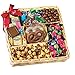 A welcome and great present basket. Divided into 5 generous compartments, this decorative ten\" tray comes with Ghirardelli Squares, Assorted Milk Toffees, Chocolate Covered Peanuts, Milk Chocolate Bavarian Pretzels - Milk Chocolate Drizzle, Milk Chocolate Bavarian Pretzels - White Chocolate Drizzled Cherries Covered in Milk Chocolate, Milk Chocolate Covered Almonds, Gourmet Caramel Popcorn, Milk Chocolate Covered Hazelnuts. A distinctive Kosher present idea!