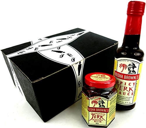 - Includes one 5 oz bottle of Busha Browne's Spicy Jerk Sauce and one 4 oz jar of Busha Browne's Traditional Jerk Seasoning Rub