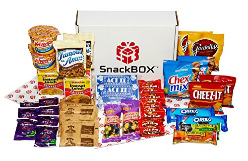 Snack Gifts Care Package for College Students, Military, Birthday, or Back to School (40 Count) From Snack Box SnackBOX designed this care package with \"present\" in thoughts. Contents: (two) two.25 oz Maruchan Chicken Taste Noodle Cups, (two) two.39 oz Kraft Velveeta Shells & Cheese Cups, (2) one.5 oz Nature\'s Valley Granola Bars, (seven) .eight oz Kellogg\'s Mixed Berry Fruit Snacks, (2) 2. oz Kar\'s Sweet and Salty Trail Combine, (four) 1.51 oz Quaker Instantaneous Oatmeal Maple & Brown Sugar, (two) 2. oz Oreo packs, (two) two. oz Well-known Amos Chocolate Chip cookie packs, (2) two.75 oz Act II Microwave Popcorn, (two) 1.75 oz Chex Mix, (two) 1.75 oz Gardetto\'s, (two) one.five oz Chez-Its, (9) Pearson\'s Salted Nut Roll Bite Size. $29.99 http://ecx.images-amazon.com/images/I/51yC7DeyzZL._SL160_.jpg