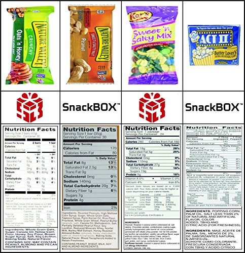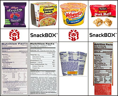 SnackBOX designed this care package with \"present\" in thoughts. Contents: (two) two.25 oz Maruchan Chicken Taste Noodle Cups, (two) two.39 oz Kraft Velveeta Shells & Cheese Cups, (2) one.5 oz Nature\'s Valley Granola Bars, (seven) .eight oz Kellogg\'s Mixed Berry Fruit Snacks, (2) 2. oz Kar\'s Sweet and Salty Trail Combine, (four) 1.51 oz Quaker Instantaneous Oatmeal Maple & Brown Sugar, (two) 2. oz Oreo packs, (two) two. oz Well-known Amos Chocolate Chip cookie packs, (2) two.75 oz Act II Microwave Popcorn, (two) 1.75 oz Chex Mix, (two) 1.75 oz Gardetto\'s, (two) one.five oz Chez-Its, (9) Pearson\'s Salted Nut Roll Bite Size.