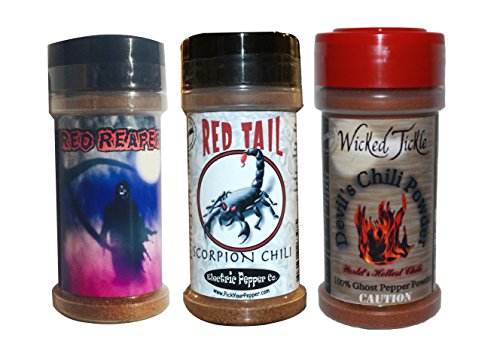 Ghost Pepper, Scorpion Chili Powder, and Carolina Reaper Chili Powder. The ultimate chili spice gift pack. You get 3x one.5 oz spice bottles of the hottest chili spices on the planet. You get a single of every single of the following: Devil\'s Chili Powder- Pure ghost pepper chili powder. Very quite sizzling. Ghost peppers are more than one,000,000 on the scoville heat scale. Red Tail- Scorpion chili powder is incredibly scorching.... trinidad scorpion peppers common one,200,000 scoville units and variety from 600,000 to one,500,000. The second hottest in the globe. I personally come to feel that ghost is hotter but this is a very close 2nd, and it is really scorching. The flavor of the scorpion chili is exceptional and distinctive. USE WITH CAUTION! The greatest description of the taste of these peppers is a a nice scorpion chili peppery taste followed by an intense and lasting heat. Red Reaper Chili Powder- The existing planet record holder at in excess of 2.two million scoville heat scale units. Really fruity chili pepper taste with an intense and lasting heat. Do not use these goods if you have a respiratory or heart condition.