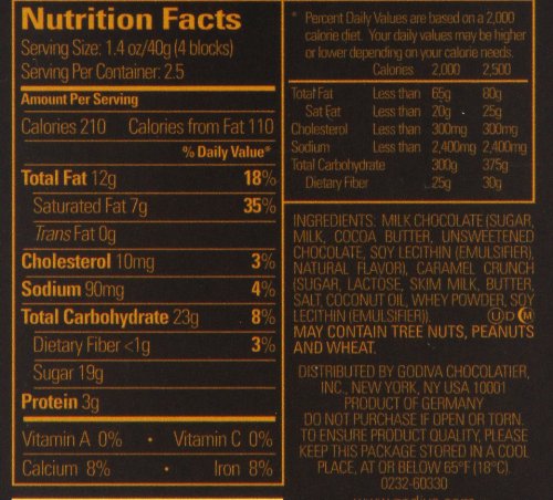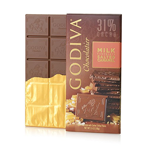 Our 31% Milk Chocolate Salted Caramel Bar is certain to delight any correct chocolate lover with its perfect balance of savory and sweet. It is scored into ten signature squares so you can break off a small piece of GODIVA each day or share with buddies. (3.five oz.)