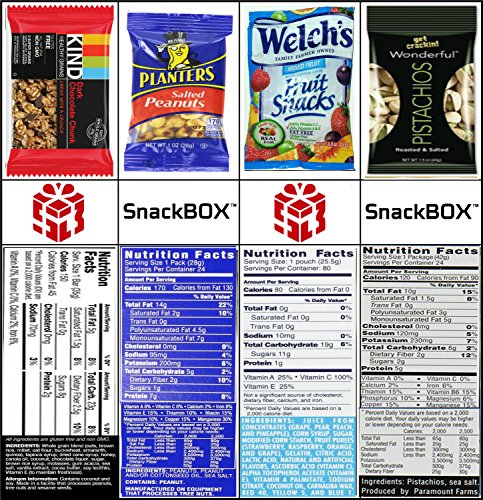 We picked some of the best brands to carry you a care bundle at an affordable price! The contents include: (2) Nature Valley Oat\'s n\' Honey 1.5oz (2) Nature Valley Fruit and Nut Trail Combine one.two oz (two) Kar\'s Sweet \'n Salty Combine 2 oz (2) Kar\'s Sunflower Kernel two oz (one) Nature Valley Sweet and Salty Nut Almond one.2 oz (1) Stacy\'s Pita Chips Cinnamon Sugar one.5oz (one) Stacy\'s Pita Chips Basically Naked 1.5oz (one) Kettle Chips Backyard Barbeque one.5 oz (one) Kettle Real Sliced Potatoes Sea Salt .eight oz (one) PoP Chips Unique Potato .8 oz (2) PoP Chips Cheddar & Sour Cream Potato .8 oz (2) PoP Chips Barbeque Potato .8oz (two) Back to Nature Mini Chocolate Chunk Cookies one.25oz (two) Sort Dark Chocolate Chunk Bar one.2 oz (3) Planters Salted Peanuts 1 oz (2) Superb Pistachios 1.5oz (seven) Welche\'s Fruit Snacks .9 oz (2) Quaker Chewy Bars .84 oz (four) Crystal Light Water Bottle Packets Wild Strawberry one.6g Cherry Pomegranate 1.8g Lemonade 2g Rasberry one.3g