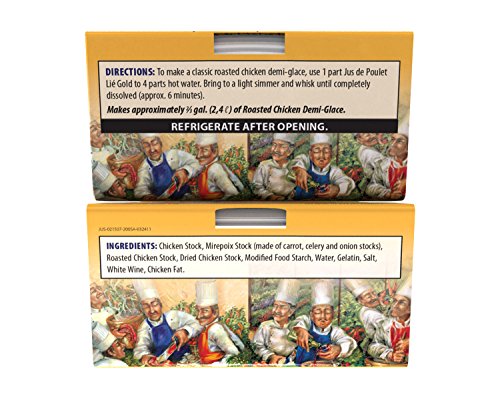A lot more than gourmet jus de Poulet lie gold roasted chicken demi-glace is correct traditional chicken stock bound with starch for sauce planning that meets the highest culinary specifications.