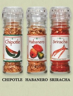 The Gourmet Grinder Collection - Hot Pepper Seasonings Selection; Chipotle / Habanero / Sriracha; Grind It Fresh for More Flavor and Aroma; The Secret of Gourmet Chefs Around the World!